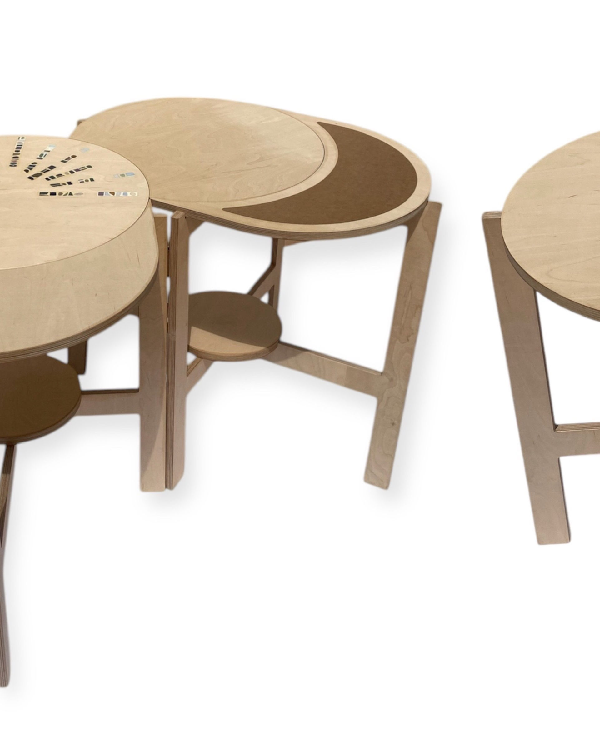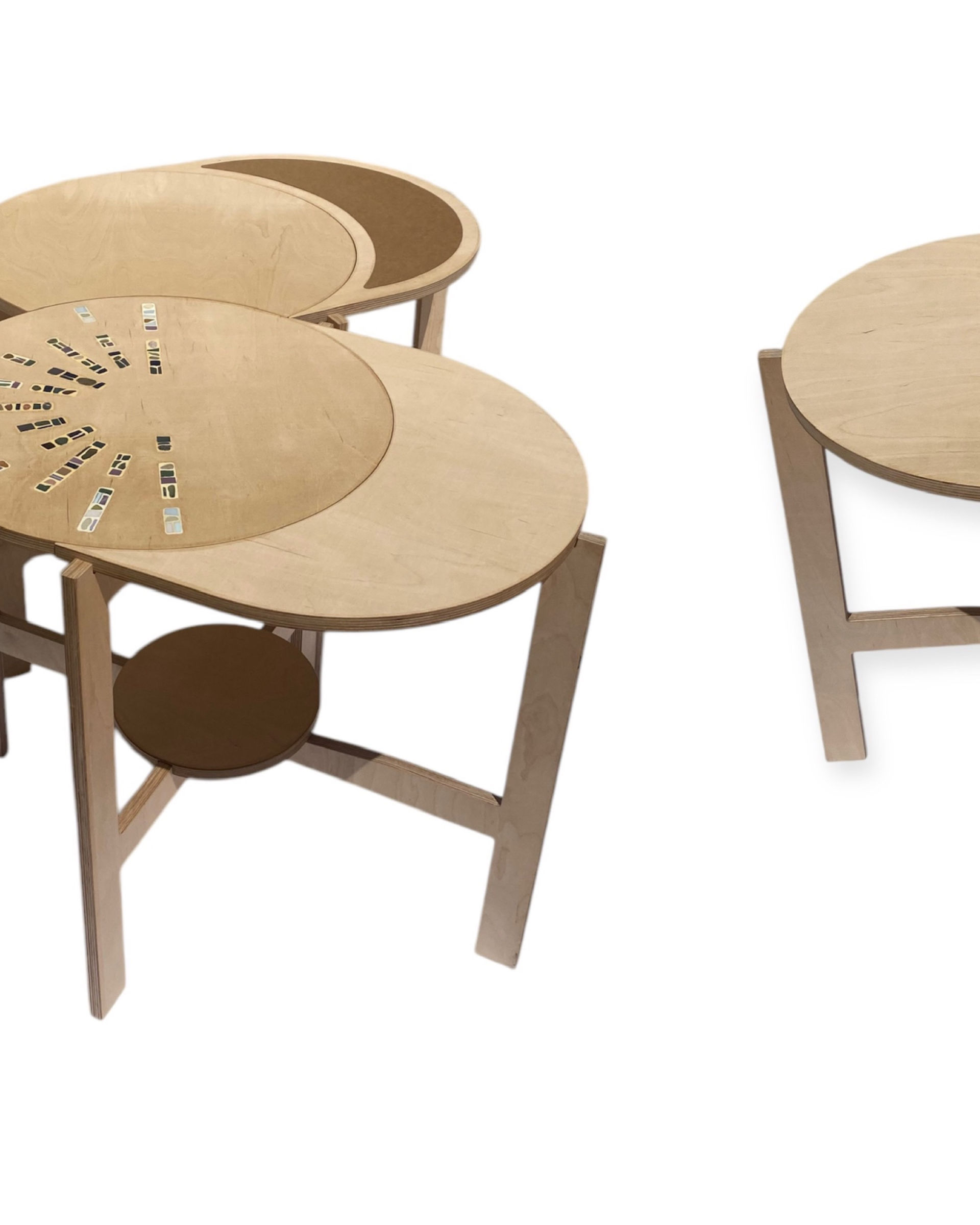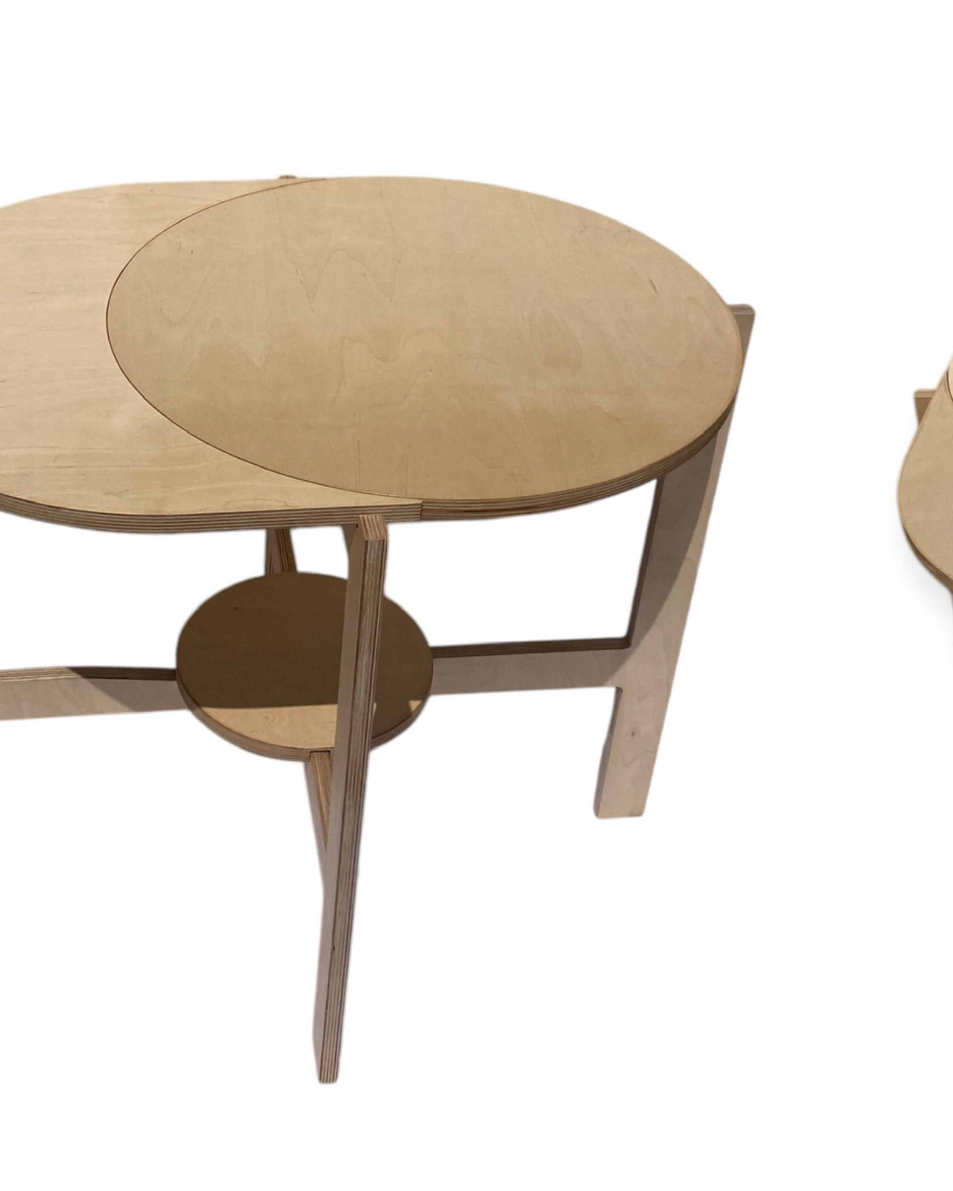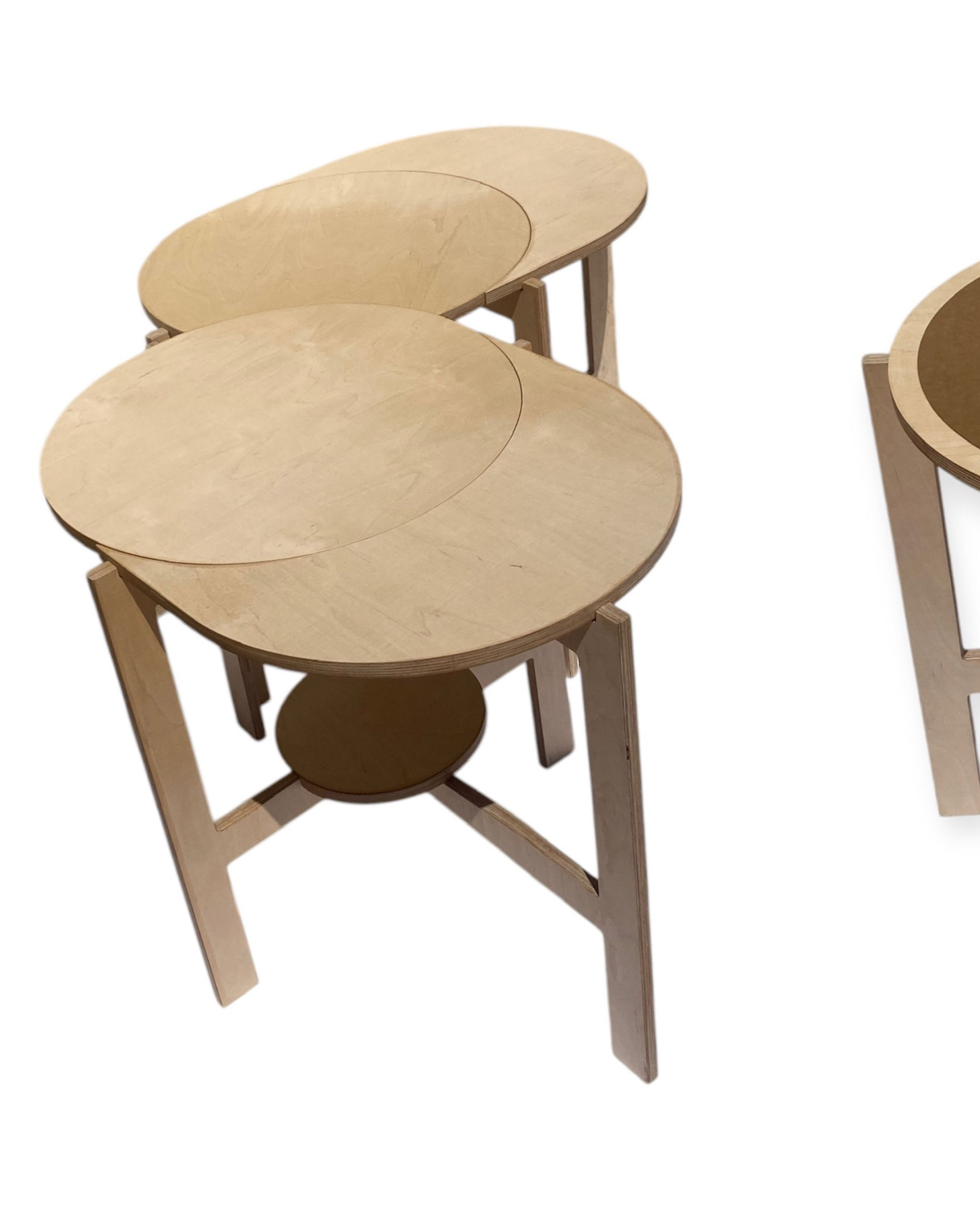 Avec leurs formes ronde et en quartier de lune, les plateaux se combinent librement pour former différentes configurations : en ligne, en triangle, ou toute autre disposition qui s’adapte à votre espace et à vos envies.